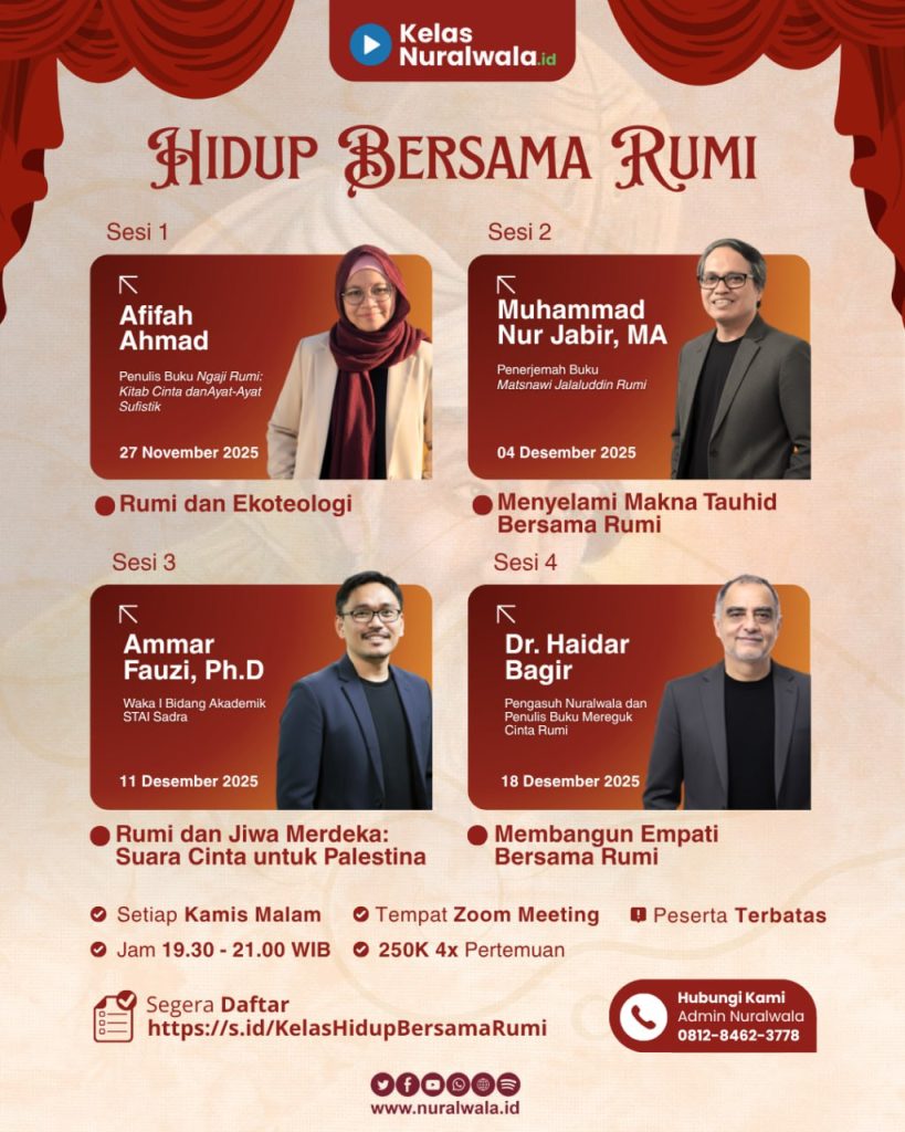 Dalam empat pertemuan penuh makna, mari kita menyelami cinta, tauhid, melejitkan empati, dan kebijaksanaan hidup bersama para pembicara yang telah lama menekuni warisan intelektual dan spiritual sang penyair sufi besar.